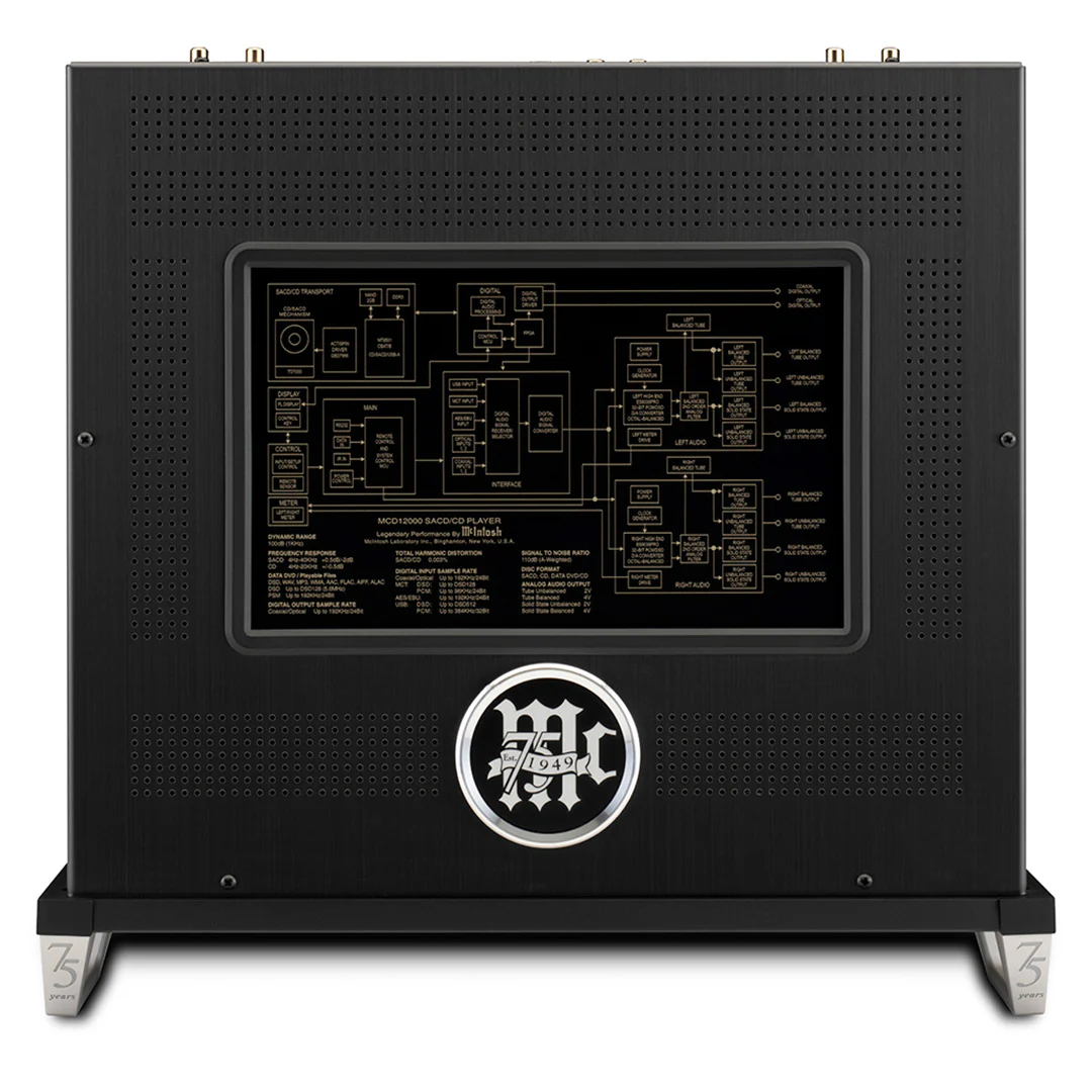 Bring all your digital music to life in your home audio system with the MCD12000 SACD/CD Player. While classified as a CD player, it is better to think of the MCD12000 as a reference level Digital-to-Analog convertor (DAC) that includes reference level SACD/CD playback capabilities. Music played through any of the MCD12000’s digital inputs or from compact discs is processed by professional grade 8-channel DACs designed for premium audiophile performance and recording studios. The MCD12000 is the perfect DAC and SACD/CD Player to use with the reference level C12000 Preamplifier.