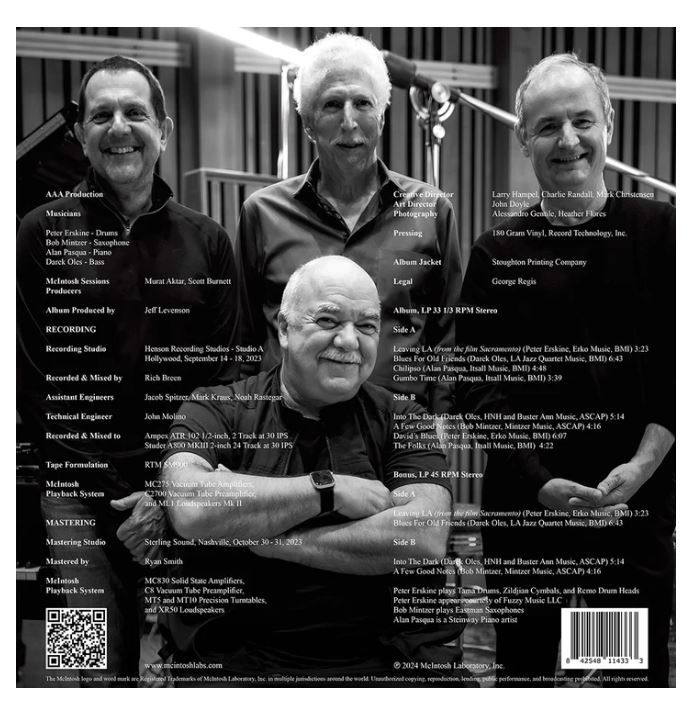 What makes the meeting of minds extra special now is the addition of saxophonist Bob Mintzer, acclaimed composer, arranger, and founding member of the Yellowjackets. A long-time associate to all, Mintzer elevates the group’s collective mastery in a new project, McIntosh SESSIONS, a direct-to-tape recording representing the partnership between hi-end audio giants McIntosh and Sterling Sound. At the heart of this captured performance is a vibrant intimacy that speaks volumes about the singular power of jazz and pure, reproduced sound.
